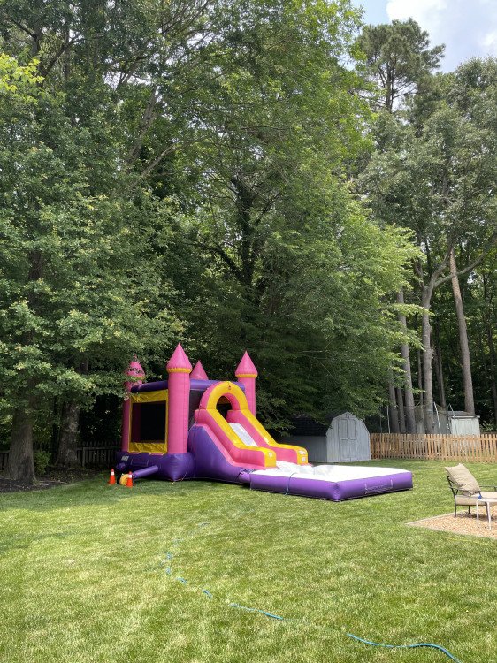 The Dream Castle bounce house comes in fantastic and vibrant pink, purple and yellow that your dreamer will love. Its tough and durable and can be used wet or dry. The slide has an extra-wide lane and the bouncer portion has a peaked roof for great interior headroom with mesh window panels on all four sides. Wet version equipped with extra large splash pool and water feature.